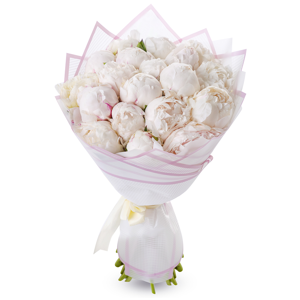 19 белых пионов